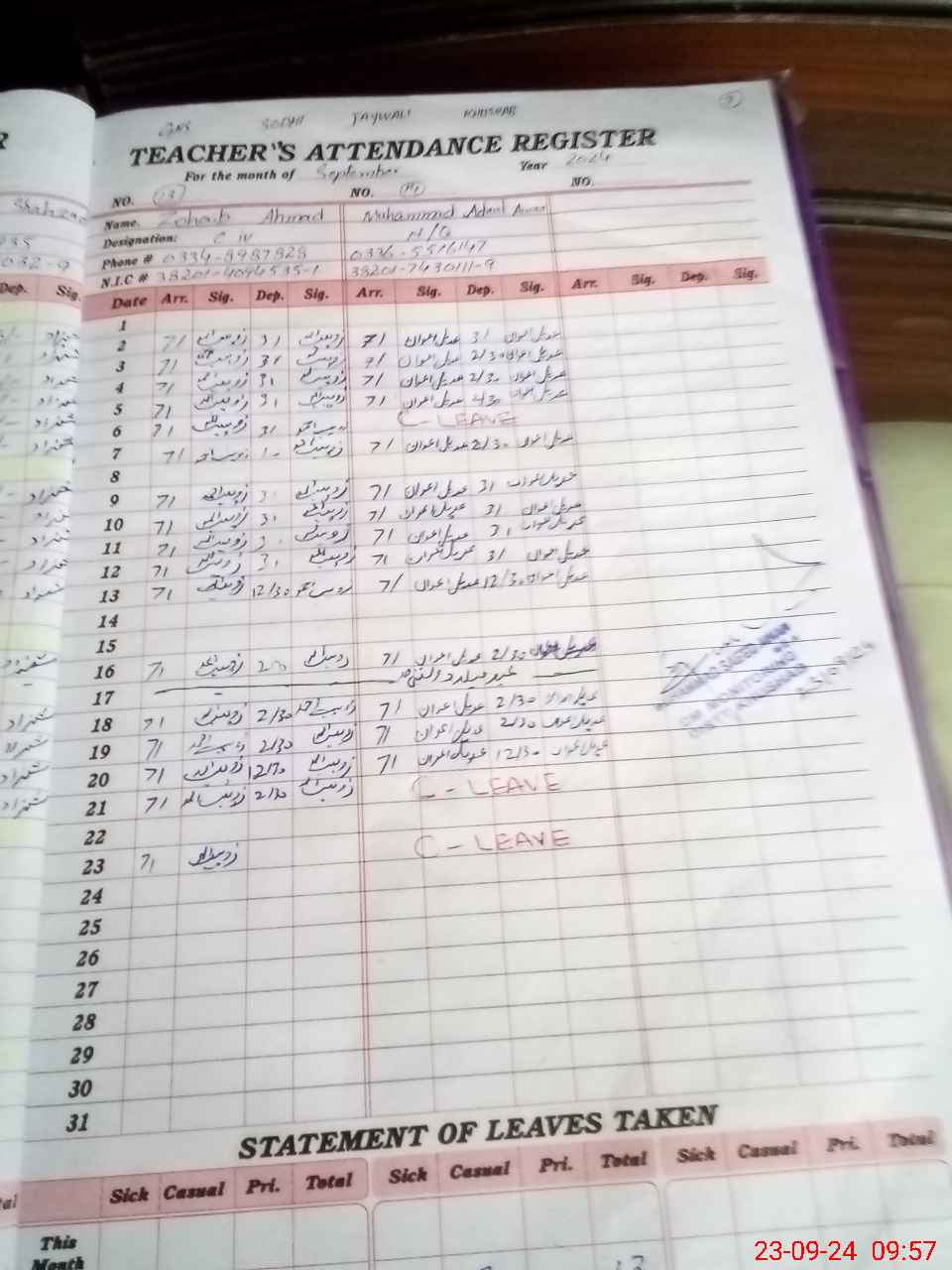 | Name: Ze**** Ha**** Designation: (School Headmaster's/Headmistress's) Sse Phone/Cell Number: 03**** |