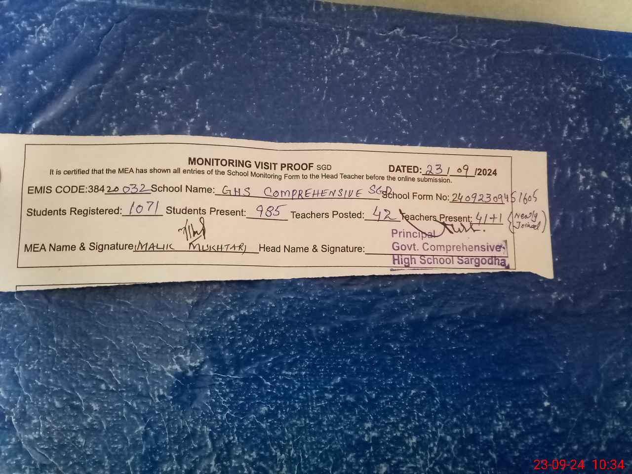 | EMIS Code: 38420032 | Name of School: GHS COMPREHENSIVE SARGODHA | |||