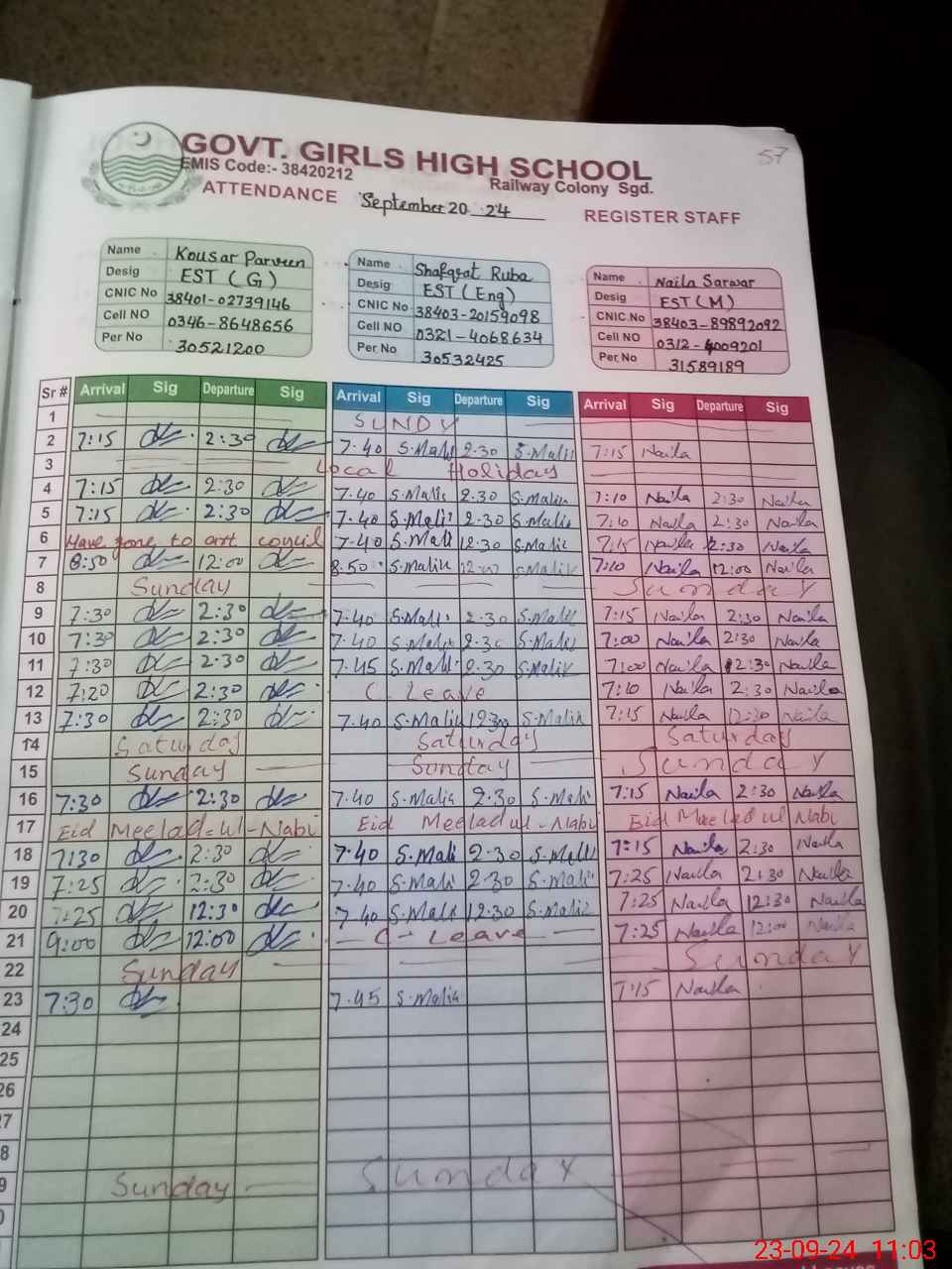 | EMIS Code: 38420212 | Name of School: GGHS RAILWAY COLONY SARGODHA | |||