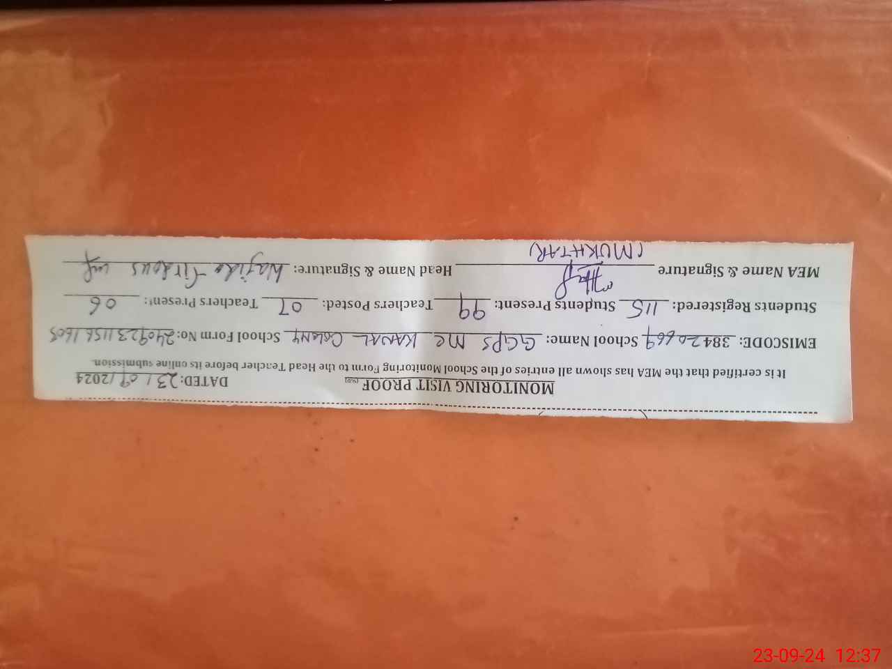 | Attendance Register | Head Teacher | MEA with School | Visit Proof |