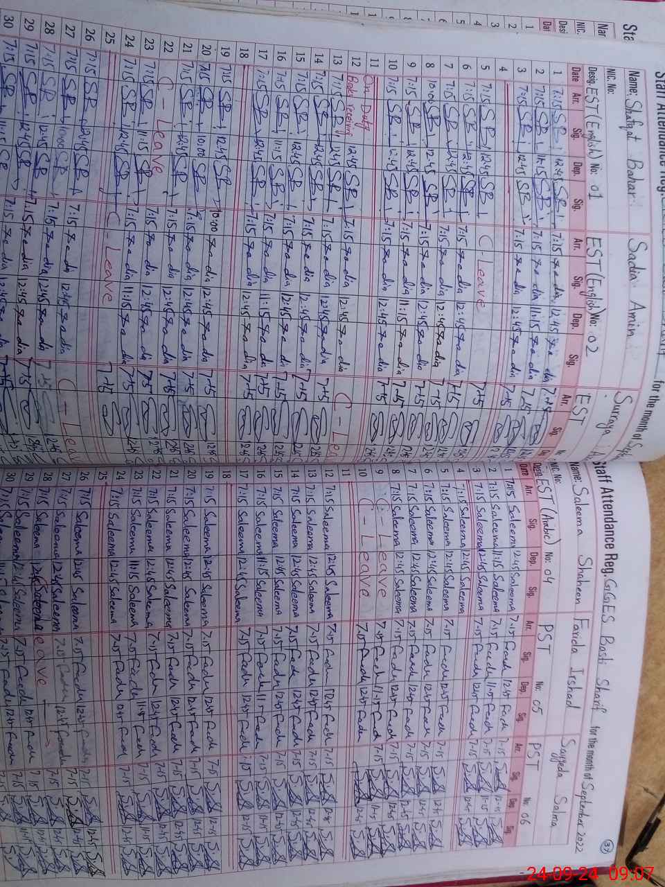 | CNIC | Full Name | Designation | R/C | Absence during last cal. month |