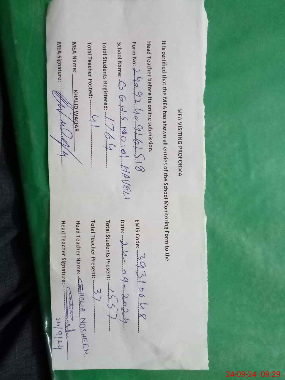 | EMIS Code: 39310048 | Name of School: GGHS NO. 1 HAVELI LAKHA MUNAWAR SHAHEED ROAD | |||