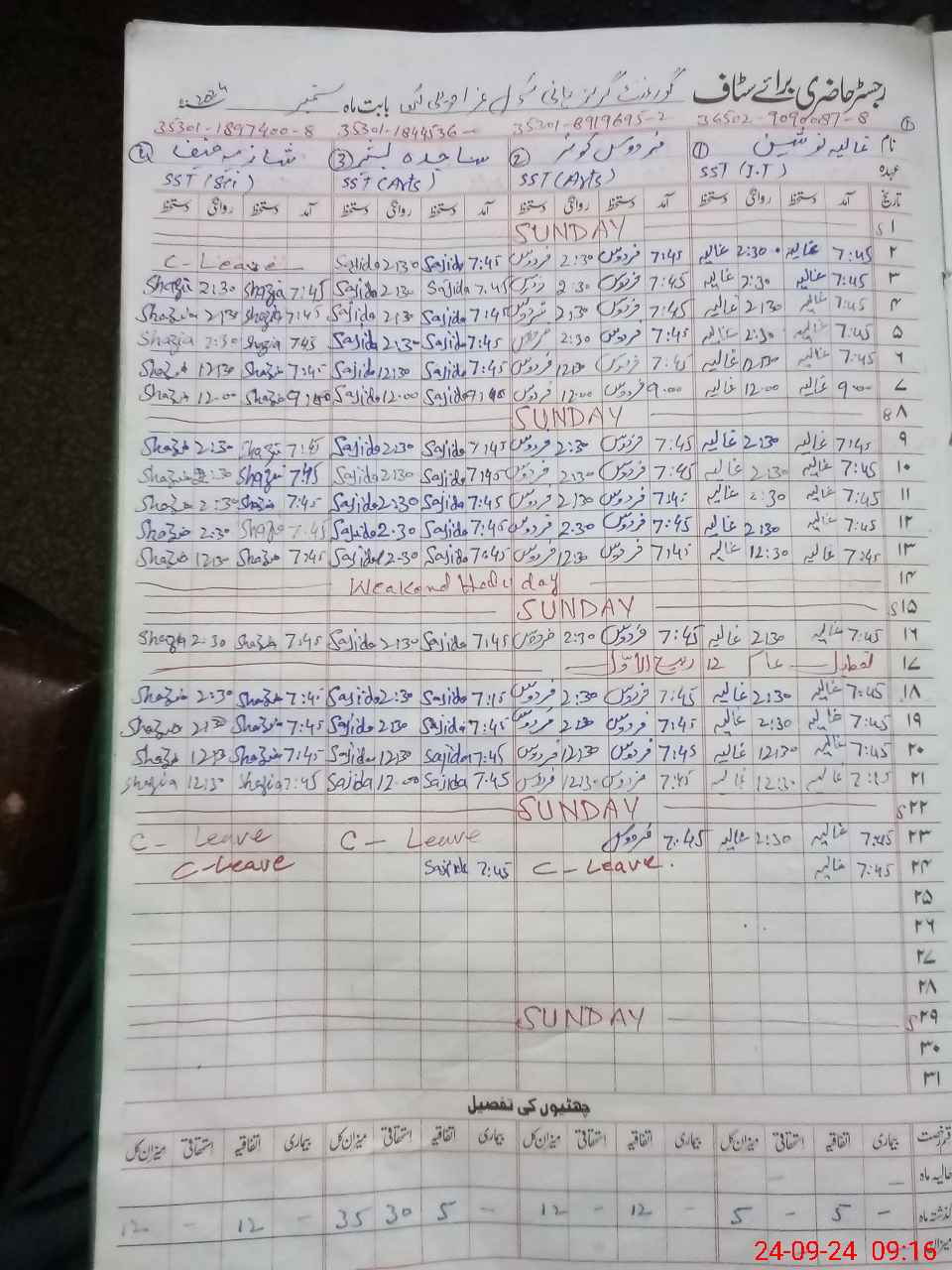 | 36**** | Uz**** Fa**** | SST | Regular | 0 | 0 | 0 | 0 | 0 | 0 | 0 | 0 | 0 | Exam Duty |