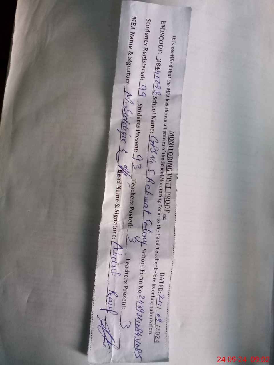 | EMIS Code: 38440098 | Name of School: GPS NO.5 RAHMAT COLONY SILLANWALI | |||
