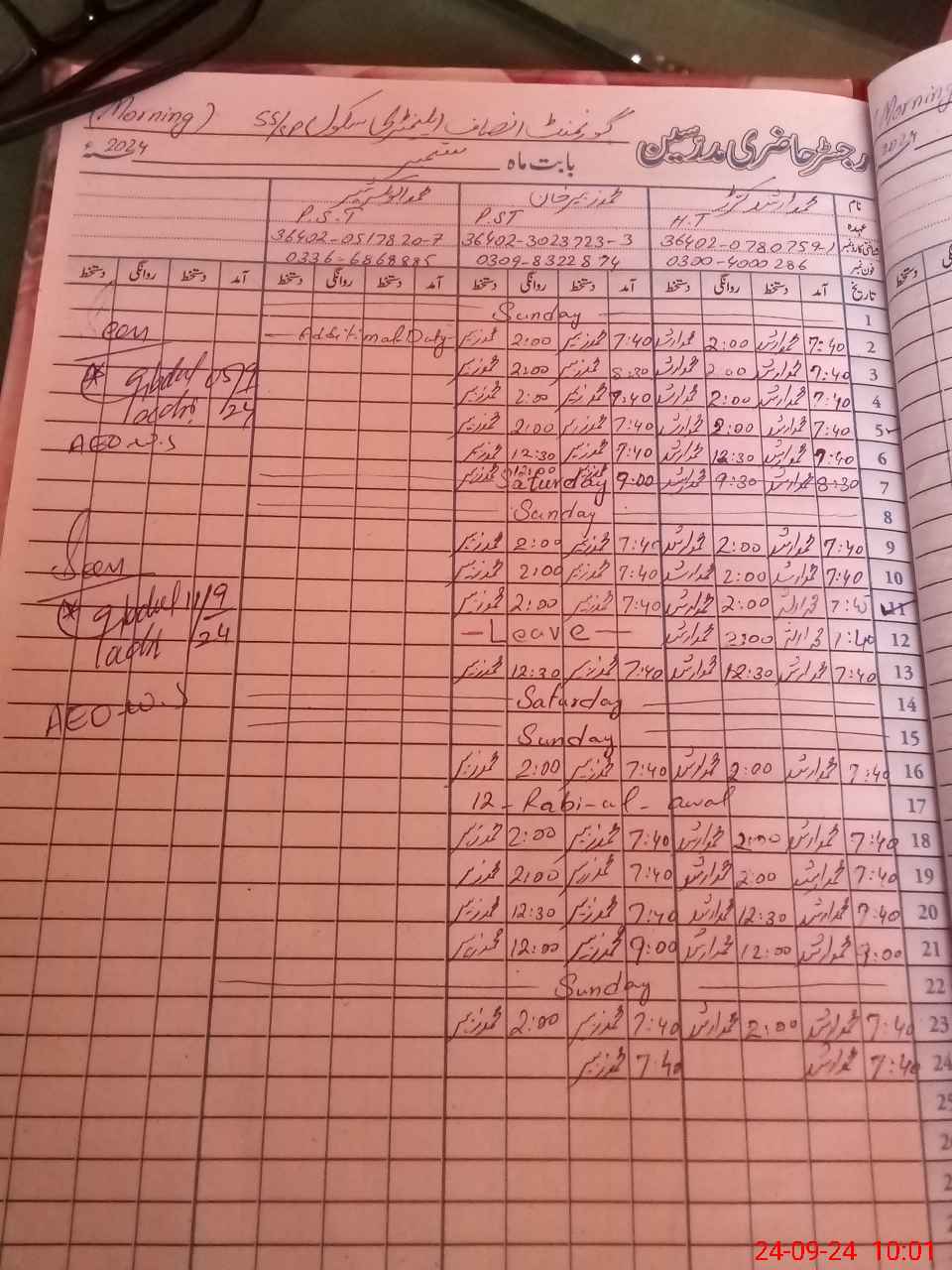 | Name: Mu**** Ar**** Designation: (School Headmaster's/Headmistress's) PST Phone/Cell Number: 03**** |