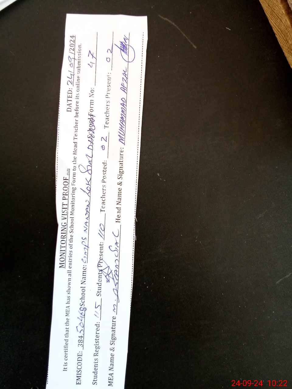 | Certified that this School was Inspected by the Undersigned MEA/DMO Today and the Information Stated Above is as Per Record. | |||||