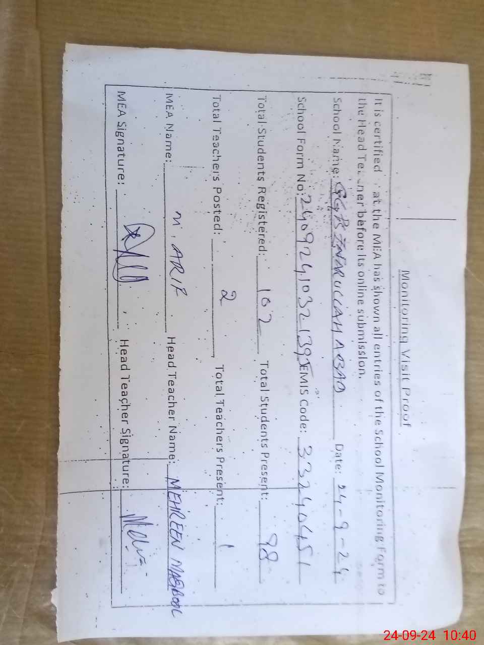 | EMIS Code: 33240451 | Name of School: GGPS ZAFARULA ABAD | |||