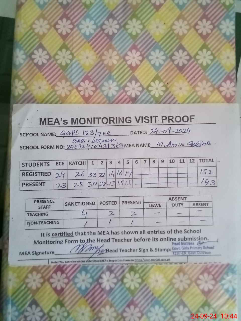 | EMIS Code: 36430407 | Name of School: GGPS 123/7-ER BASTI DALOWAN, TULAMBA | |||