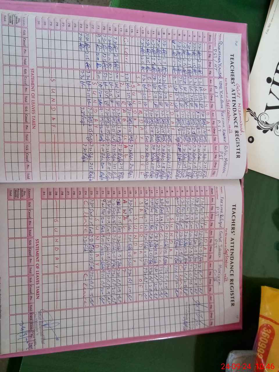 | Leave | Duty | Absent | Maternity | Medical | Ex- Pak |