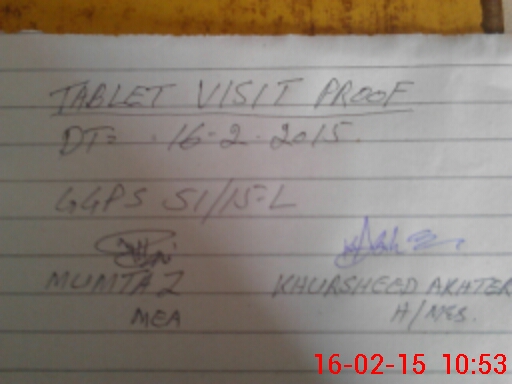 | School Visited by School Health & Nutrition Supervisor (No. of Visits) | 1 | Name1: | Iftikhar | Name2: | |