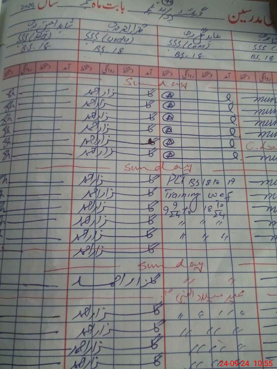 | CNIC | Full Name | Designation | R/C | Absence During Last Calender Month |