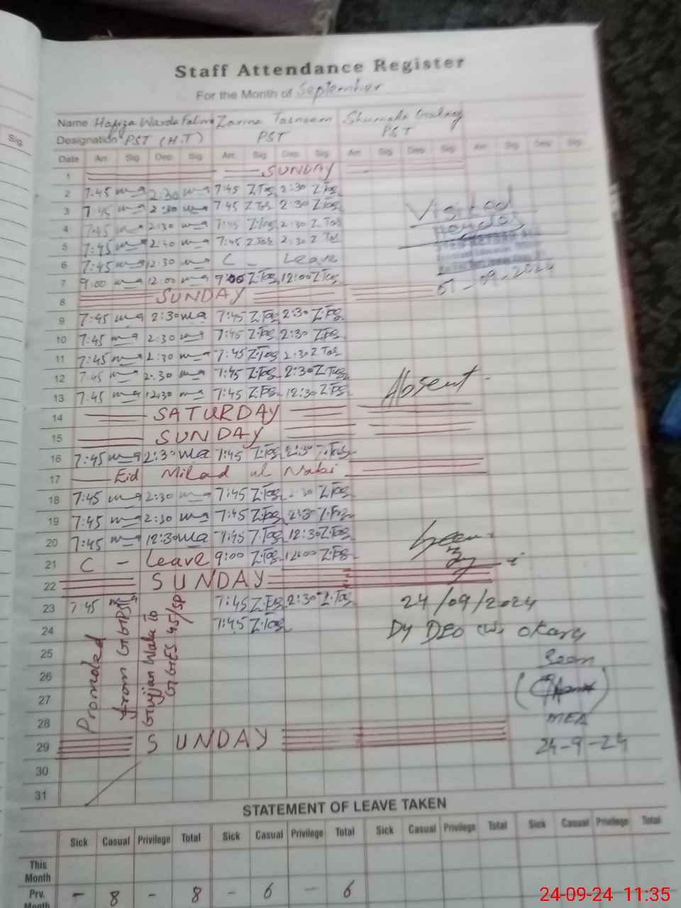 | 35**** | Sh**** Gu**** | PST | Regular | 0 | 0 | 0 | 0 | 0 | 0 | 0 | 0 | 0 | Absent (Un-Authorized) |