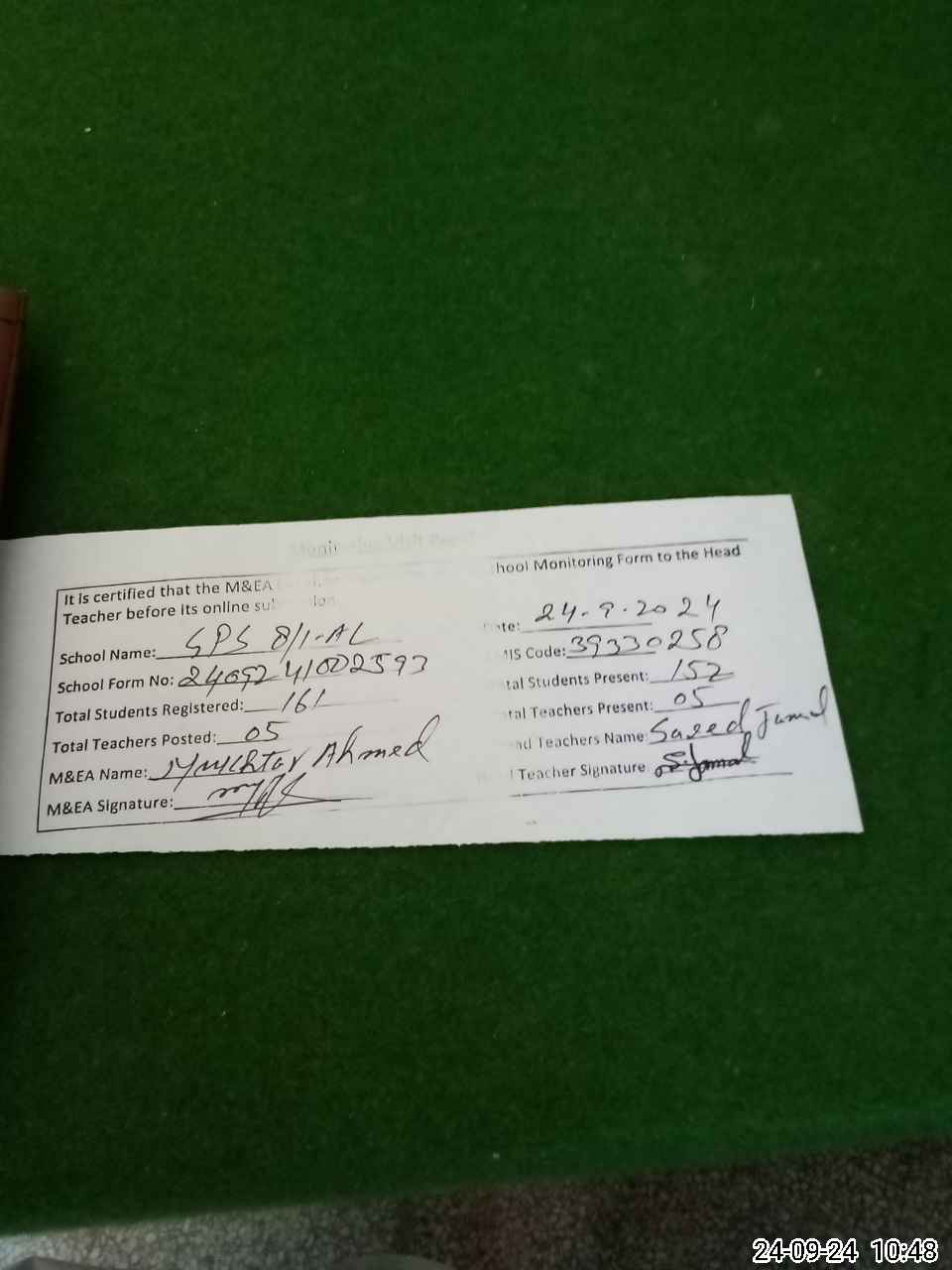 | Name: Sa**** Ja**** Designation: (School Headmaster's/Headmistress's) PST Phone/Cell Number: 03**** |
