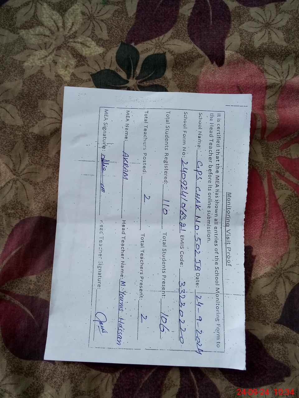 | EMIS Code: 33230220 | Name of School: GPS CHAK NO 502 JB | |||