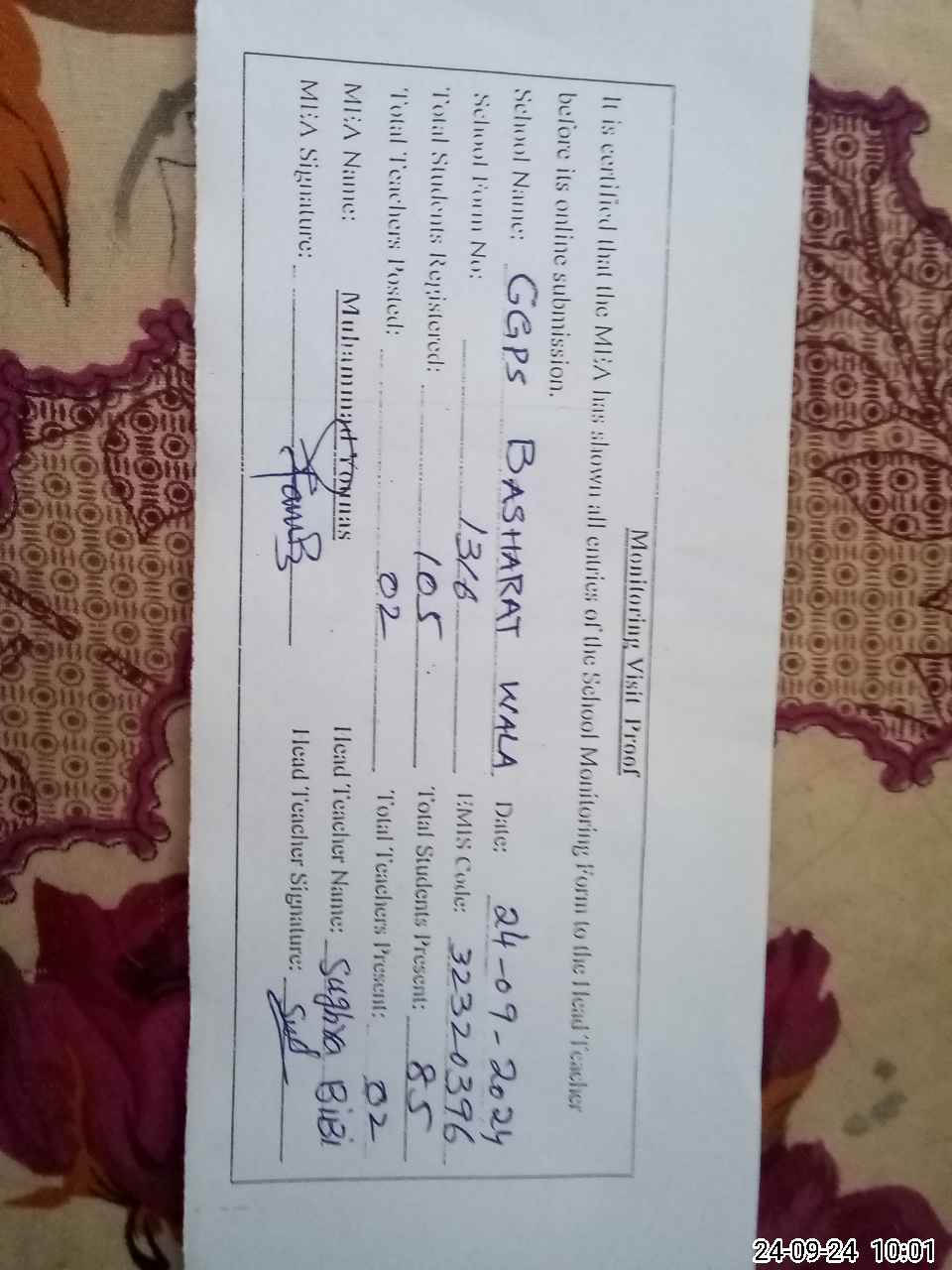 | EMIS Code: 32320396 | Name of School: GGPS BASHARAT WALA | |||