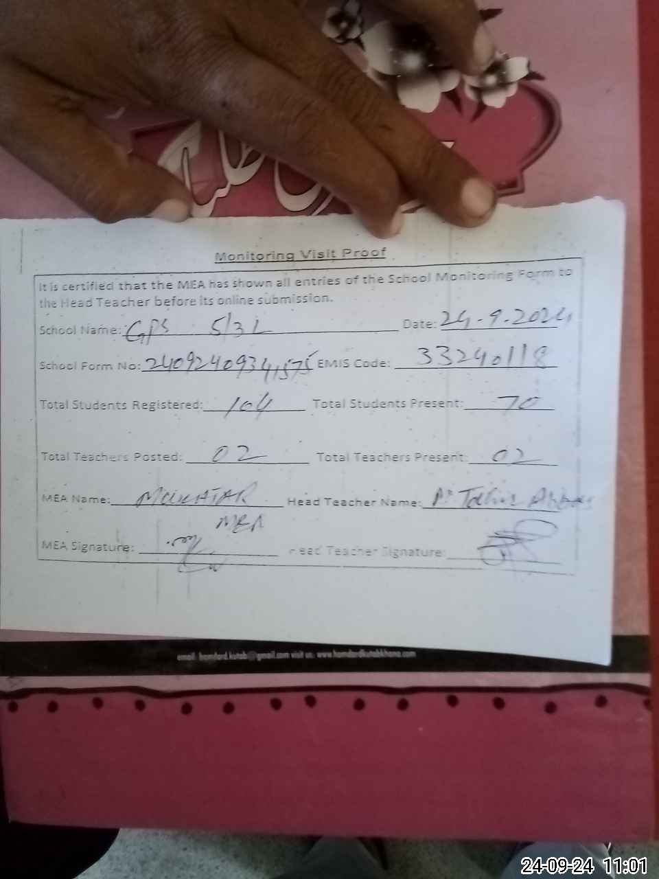 | EMIS Code: 33240118 | Name of School: GPS CHAK NO 5/3 L | |||