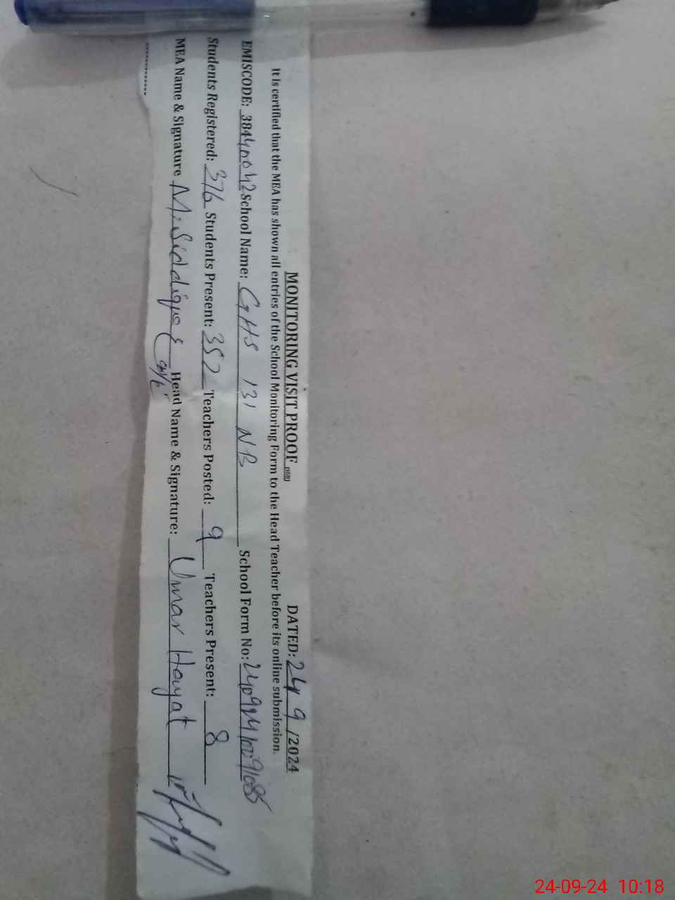 | EMIS Code: 38440042 | Name of School: GHS CHAK NO.131 NB | |||