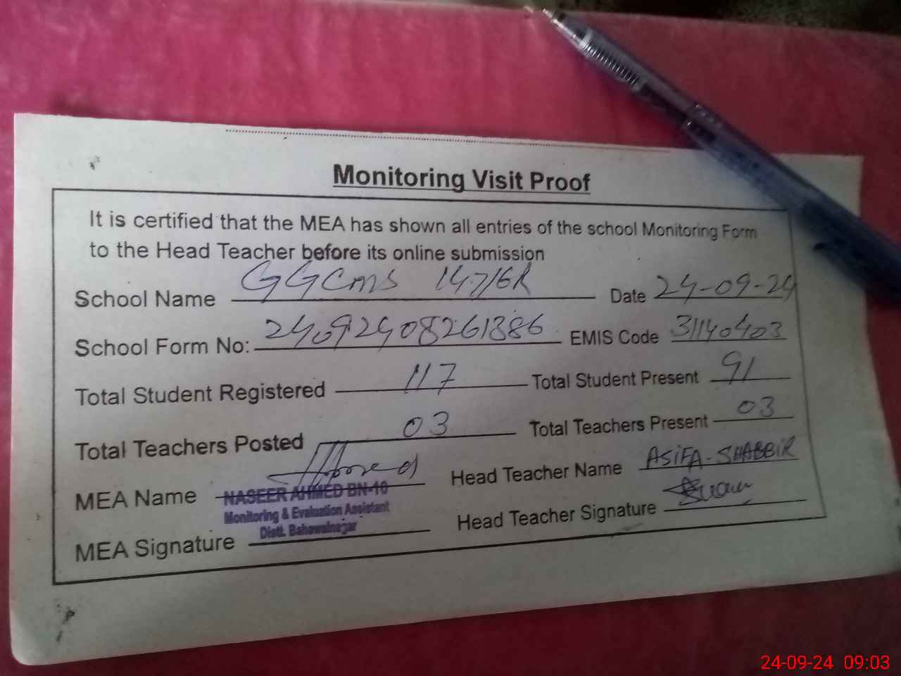 | EMIS Code: 31140403 | Name of School: GGCMS CHAK NO.147/6-R | |||
