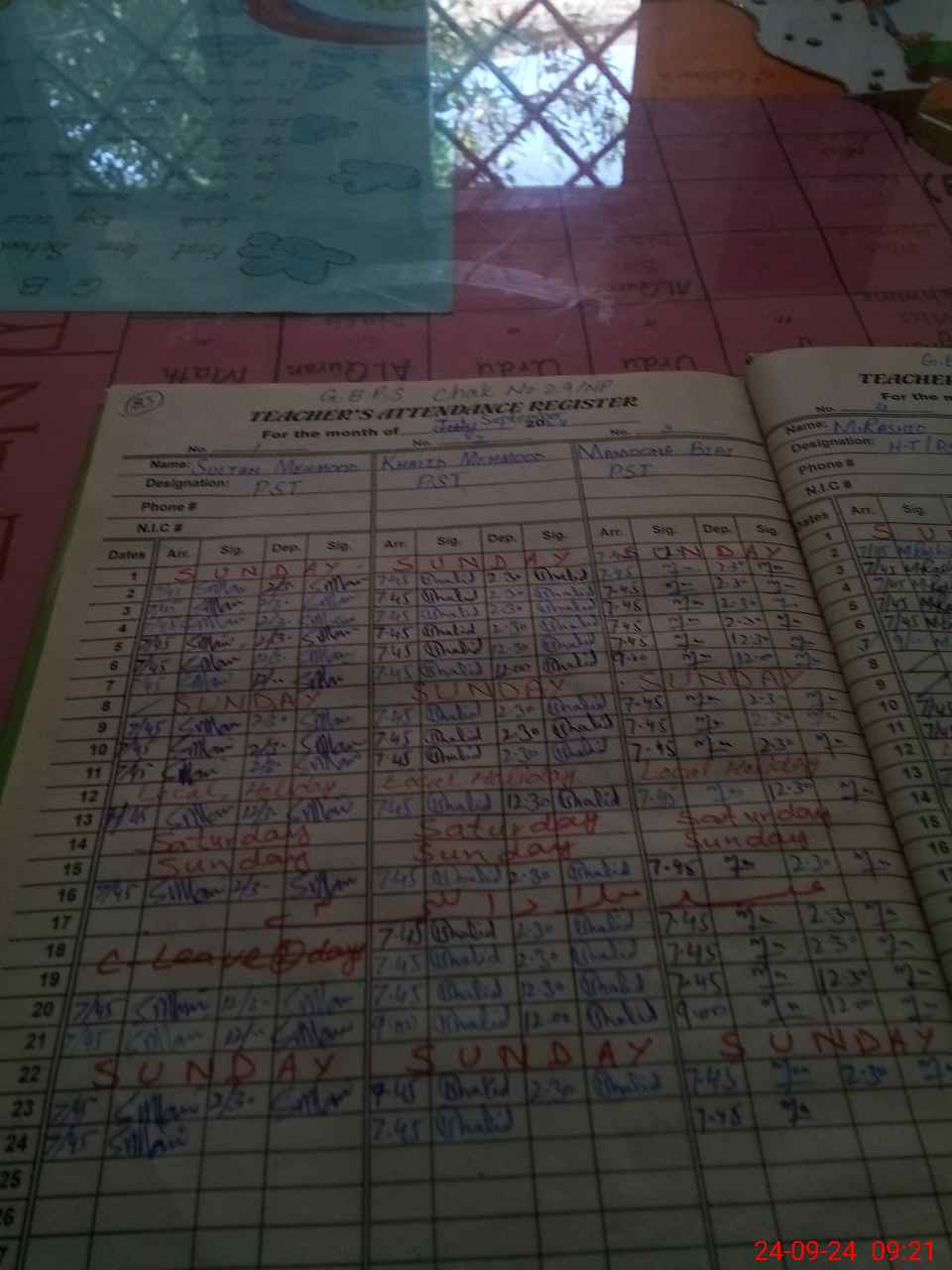 | Name: MRa**** Designation: (School Headmaster's/Headmistress's) PST/PTC/JV Phone/Cell Number: 03**** |