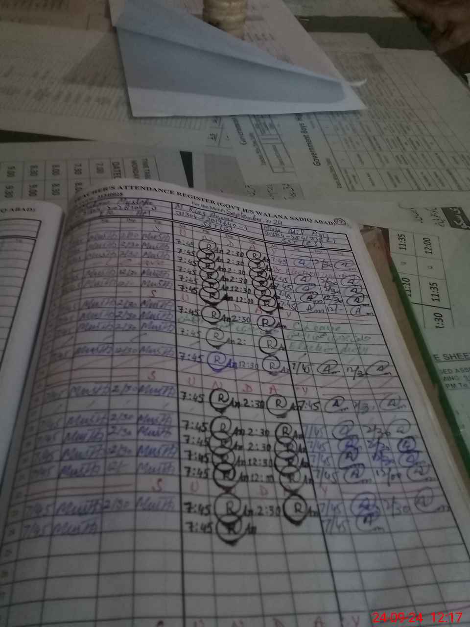 | CNIC | Full Name | Designation | R/C | Absence during last cal. month |