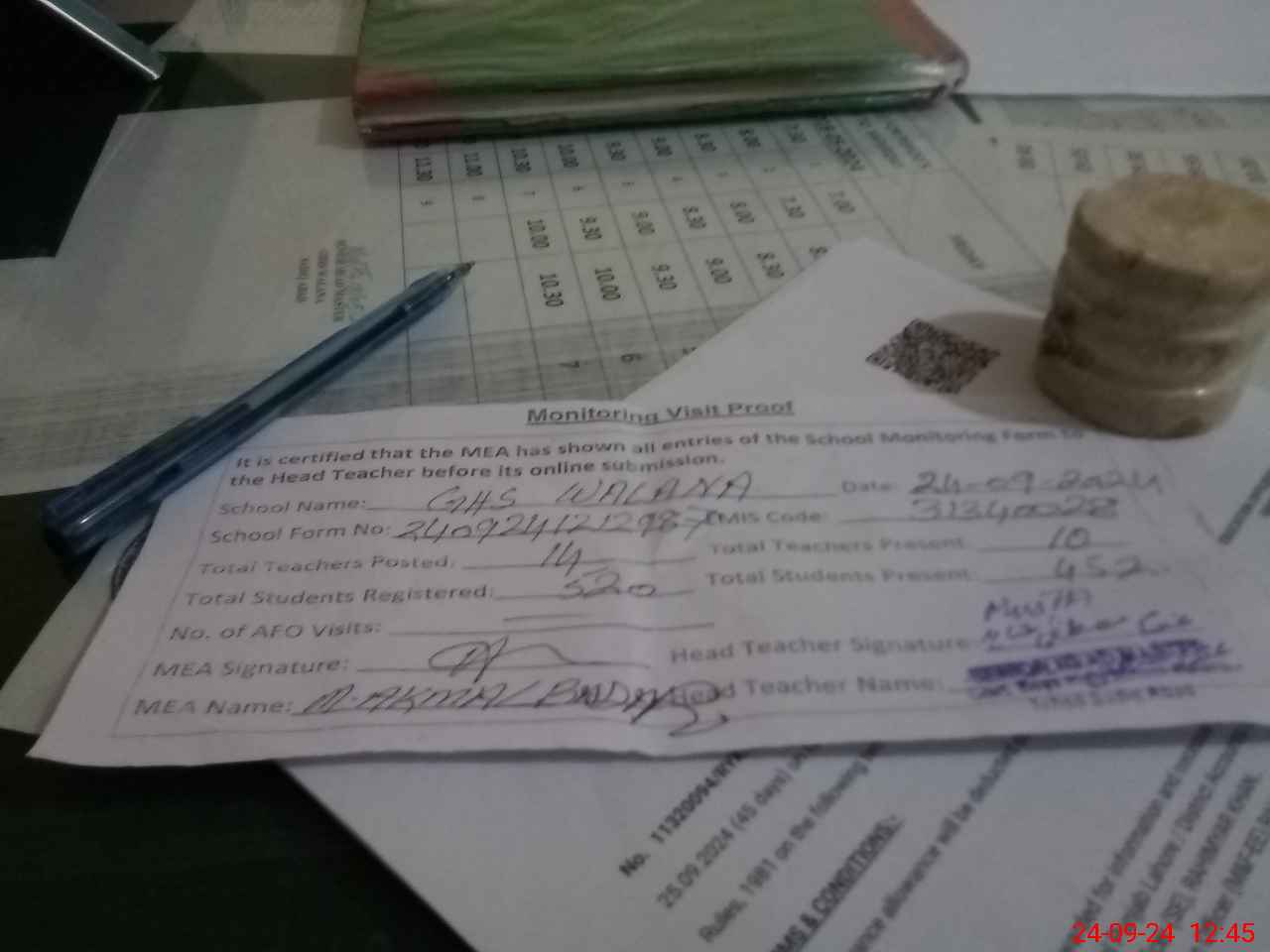 | Attendance Register | Head Teacher | MEA with School | Visit Proof |