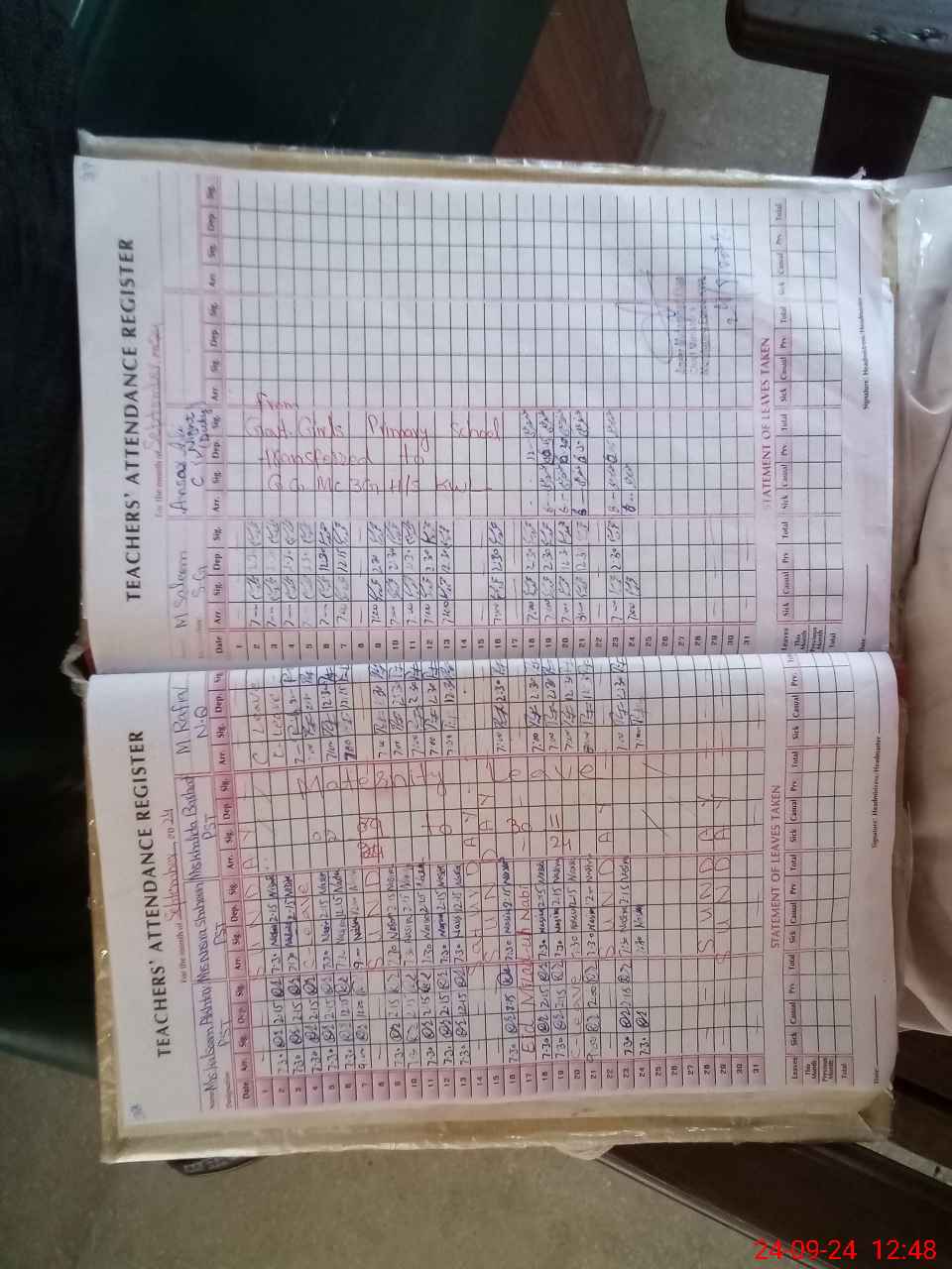| Leave | Duty | Absent | Maternity | Medical | Ex- Pak |
