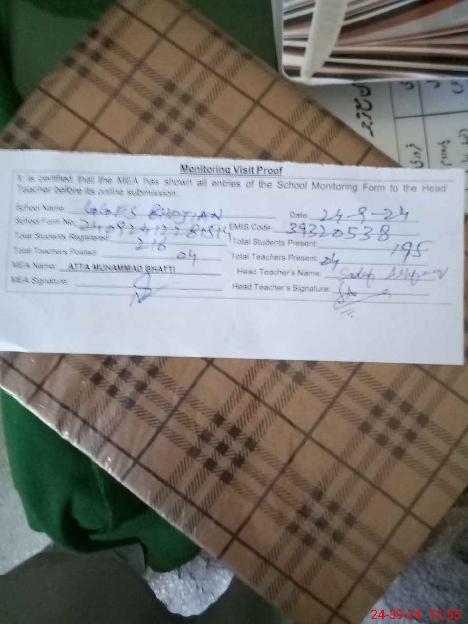 | Certified that this School was Inspected by the Undersigned MEA/DMO Today and the Information Stated Above is as Per Record. | |||||