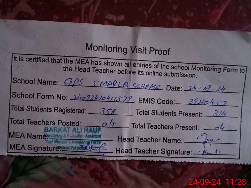 | EMIS Code: 39210457 | Name of School: GPS 5-MARLA SCHEME ADDA CHAK BEDI | |||