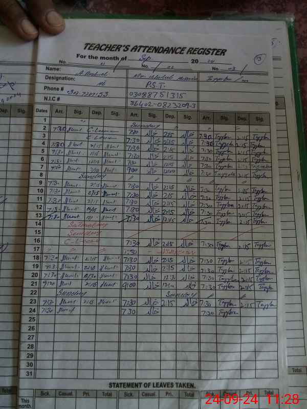 | Name: Kh**** Hu**** Designation: (School Headmaster's/Headmistress's) PST Phone/Cell Number: 03**** |