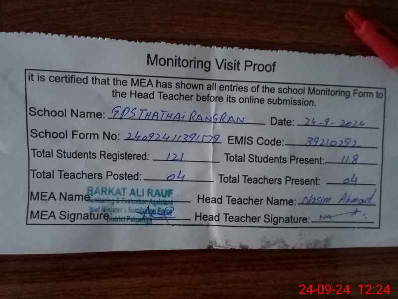 | EMIS Code: 39210292 | Name of School: GPS THATHAI RANGRAN P/O CHAK BEDI PAPATTAN | |||