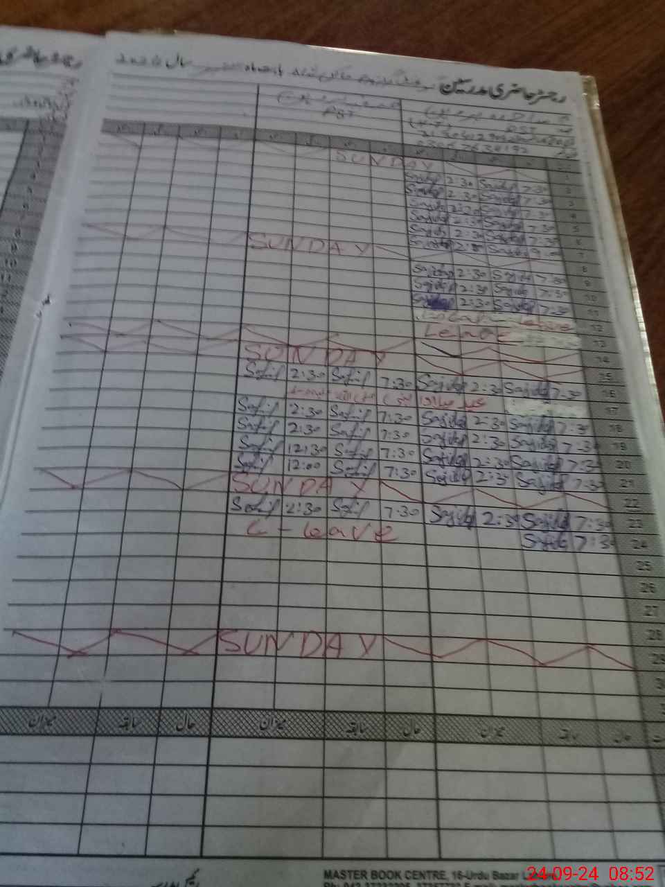 | CNIC | Full Name | Designation | R/C | Absence During Last Calender Month |