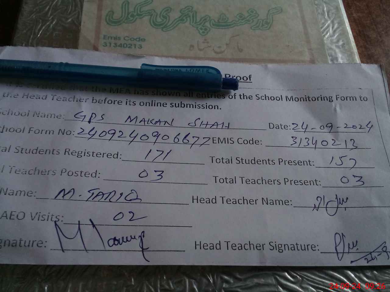 | EMIS Code: 31340213 | Name of School: GPS MAKAN SHAH | |||