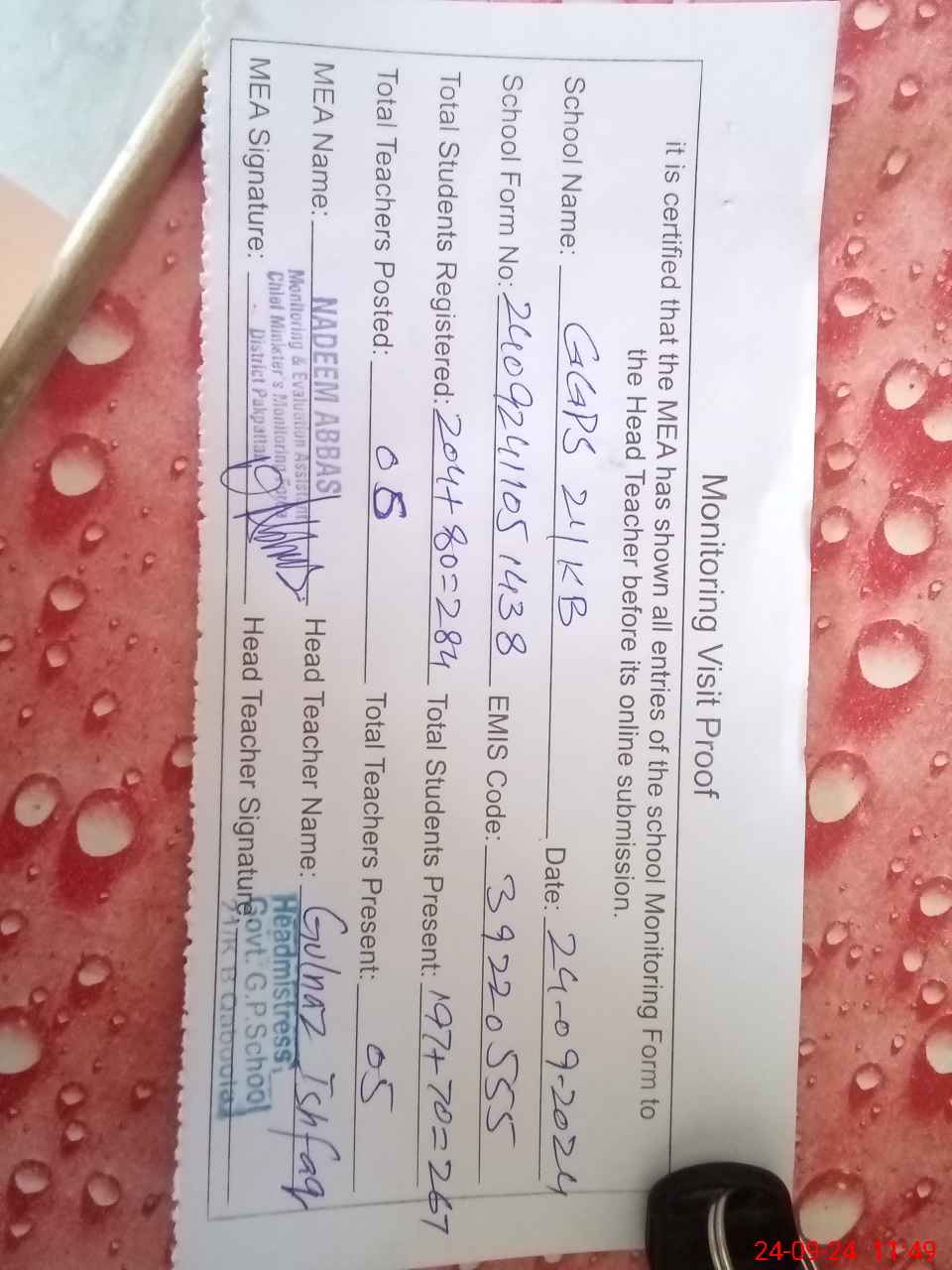 | Name: GU**** IS**** Designation: (School Headmaster's/Headmistress's) PST Phone/Cell Number: 03**** |