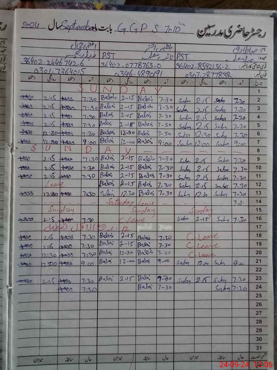 | CNIC | Full Name | Designation | R/C | Absence During Last Calender Month |