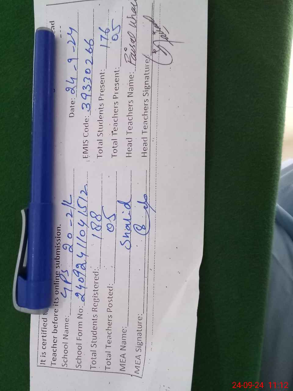 | Certified that this School was Inspected by the Undersigned MEA/DMO Today and the Information Stated Above is as Per Record. | |||||