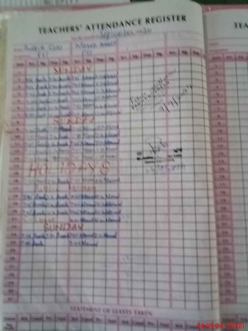 | Leave | Duty | Absent | Maternity | Medical | Ex- Pak |