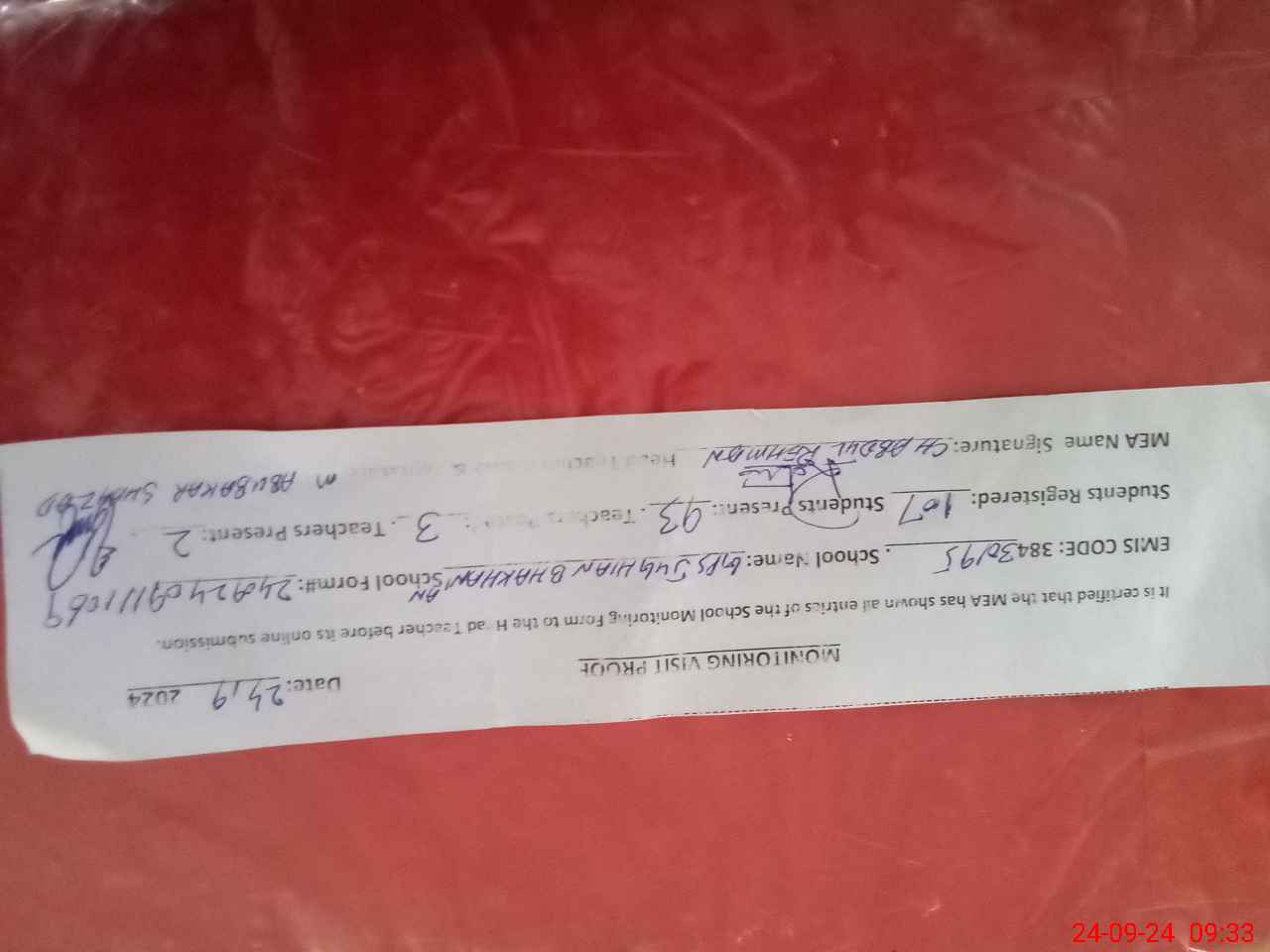 | Certified that this School was Inspected by the Undersigned MEA/DMO Today and the Information Stated Above is as Per Record. | |||||