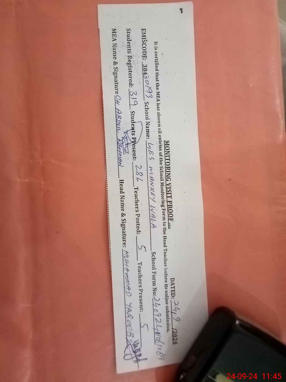 | EMIS Code: 38430193 | Name of School: GHS MANKEY WALA | |||