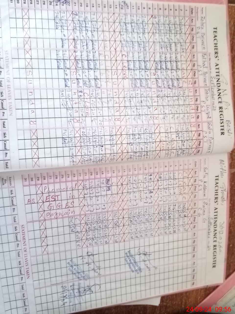 | Leave | Duty | Absent | Maternity | Medical | Ex- Pak |