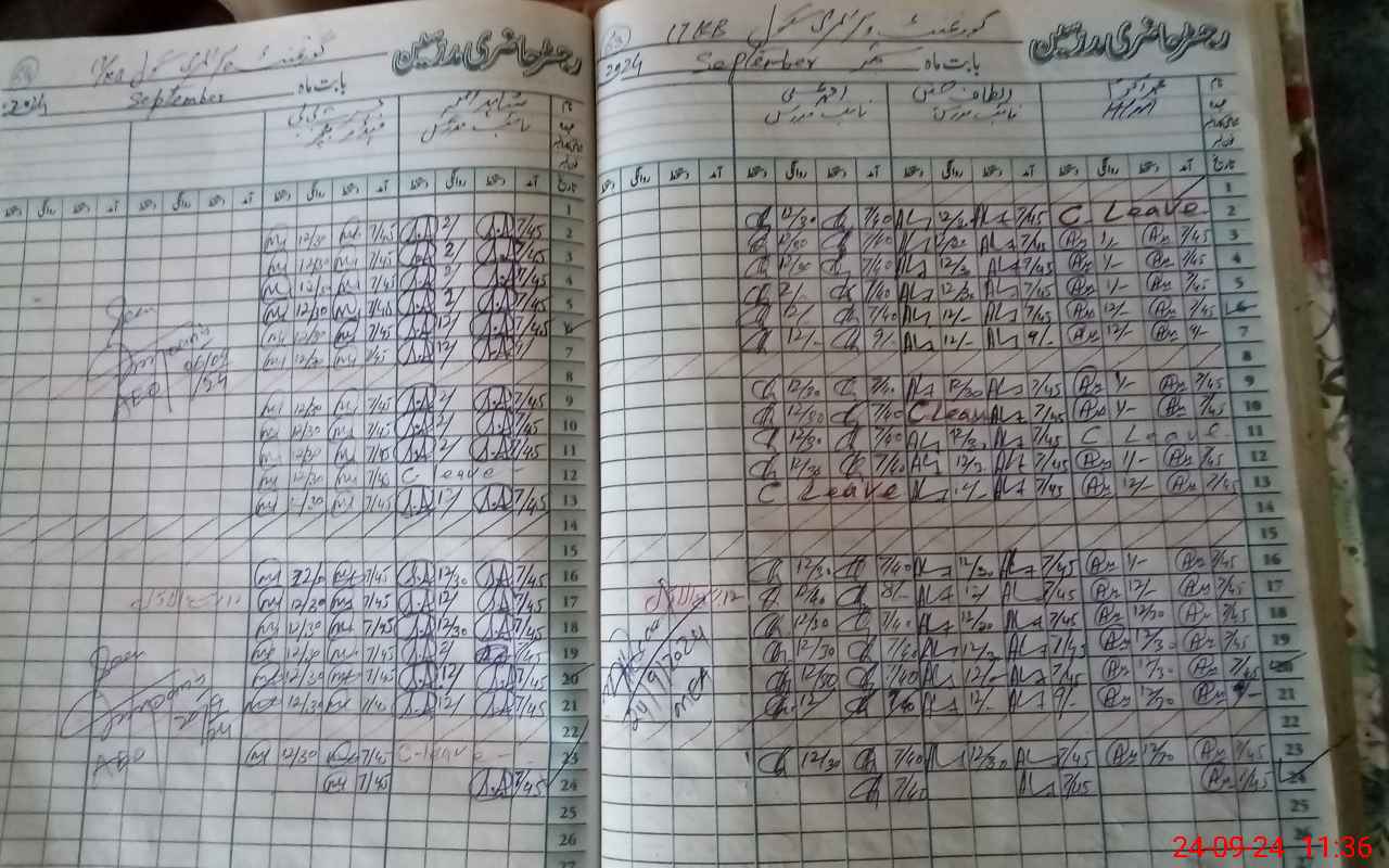 | CNIC | Full Name | Designation | R/C | Absence During Last Calender Month |