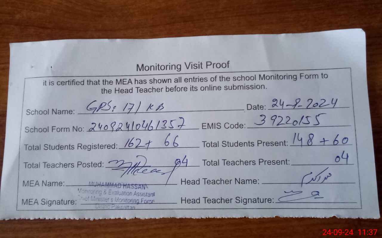 | EMIS Code: 39220155 | Name of School: GPS CHAK NO. 17 KB | |||