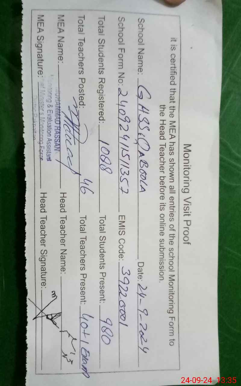 | EMIS Code: 39220001 | Name of School: GHSS QABOOLA | |||