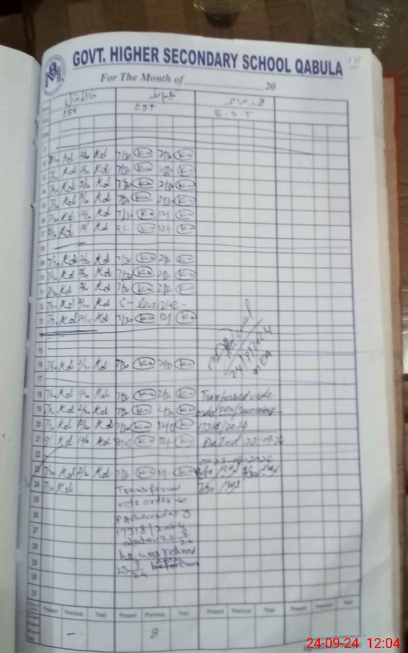 | 36**** | Am**** Hu**** | SST | Regular | 0 | 0 | 0 | 0 | 0 | 0 | 0 | 0 | 0 | Exam Duty |