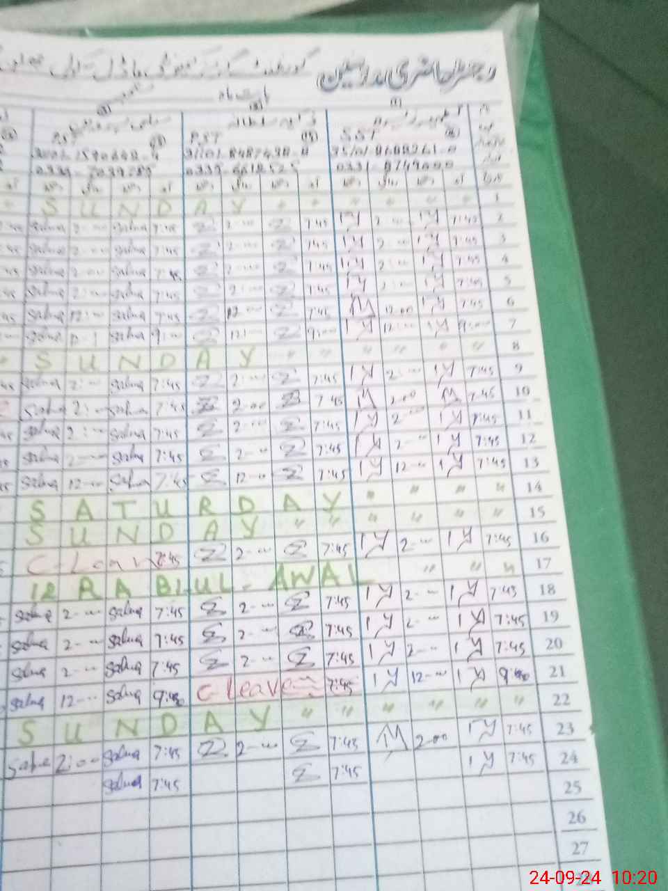 | CNIC | Full Name | Designation | R/C | Absence During Last Calender Month |