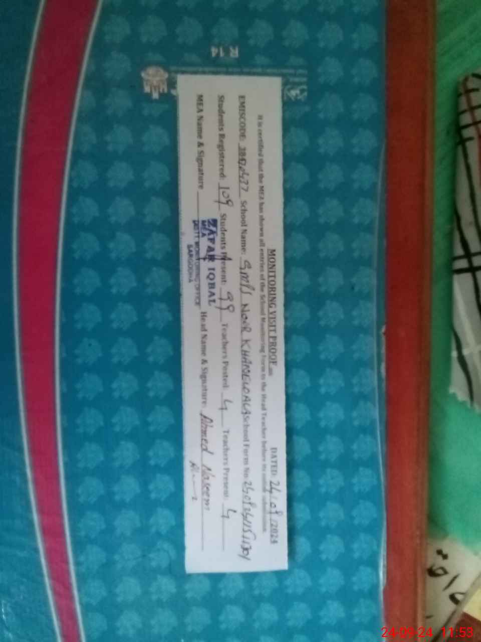 | Attendance Register | Head Teacher | MEA with School | Visit Proof |