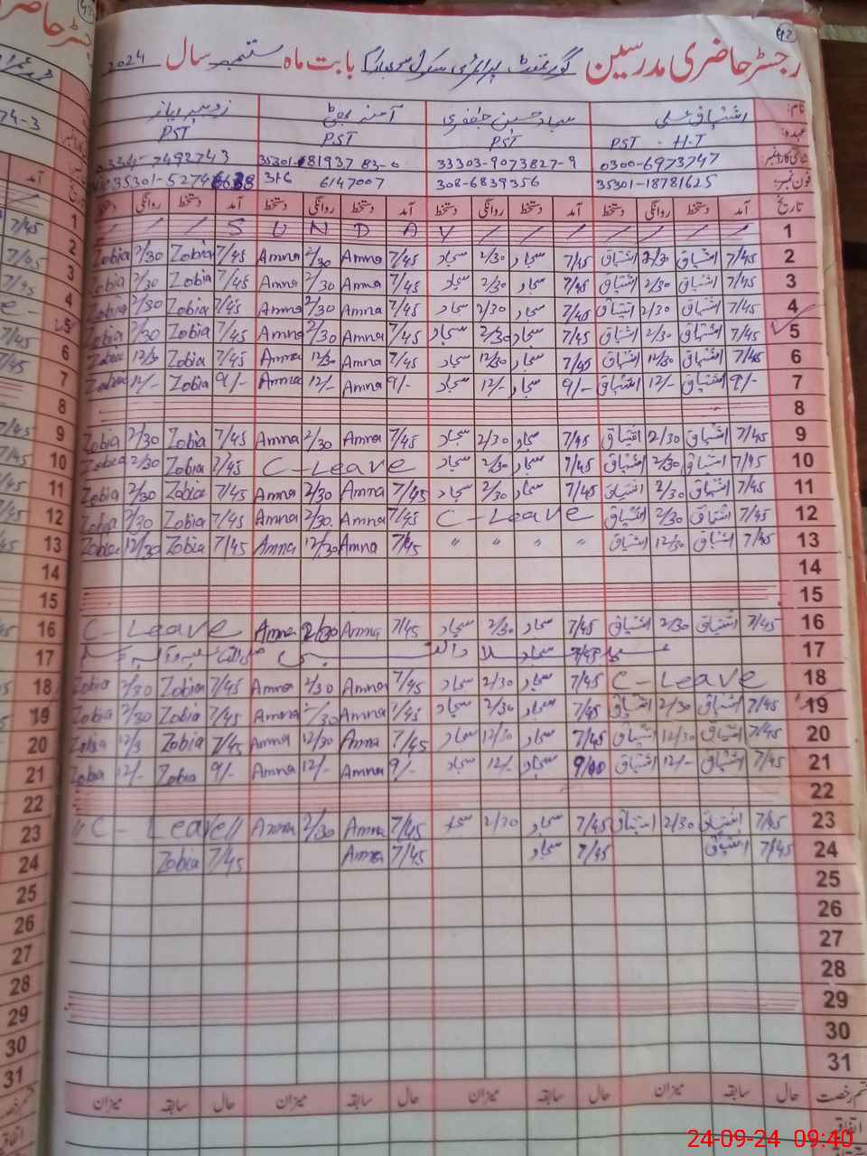 | Name: IS**** AL**** Designation: (School Headmaster's/Headmistress's) PST Phone/Cell Number: 03**** |