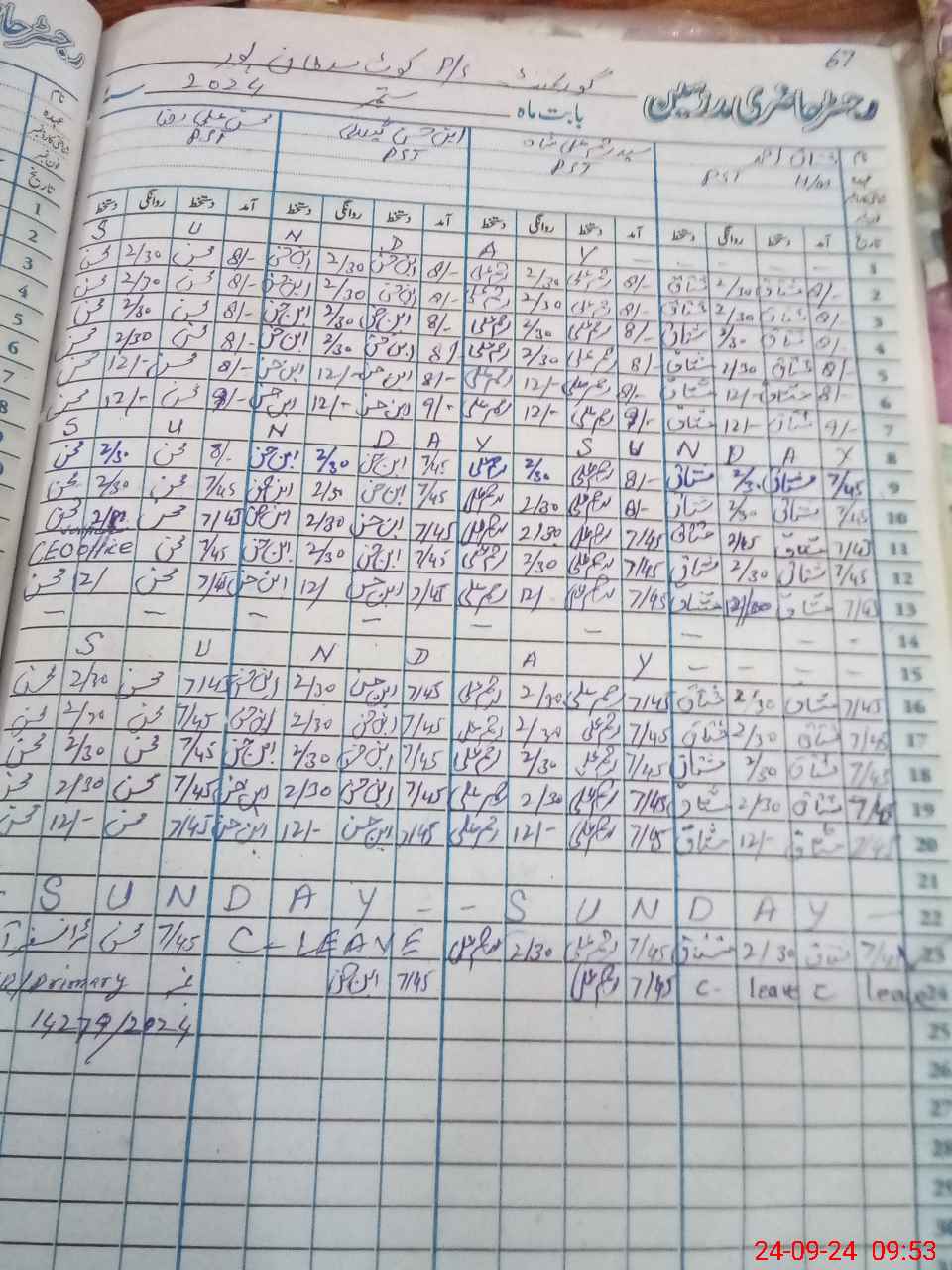 | CNIC | Full Name | Designation | R/C | Absence During Last Calender Month |