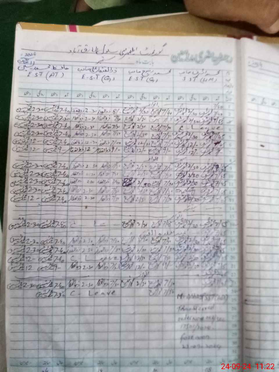 | Leave | Duty | Absent | Maternity | Medical | Ex- Pak |