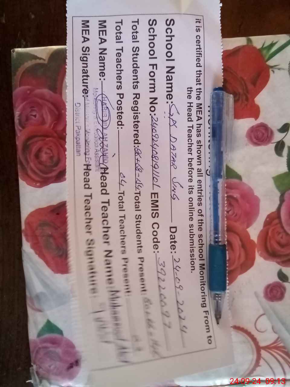 | Name: MU**** AB**** Designation: (School Headmaster's/Headmistress's) PST Phone/Cell Number: 03**** |