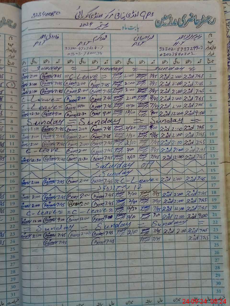 | Name: Mu**** Ih**** Designation: (School Headmaster's/Headmistress's) PST Phone/Cell Number: 03**** |